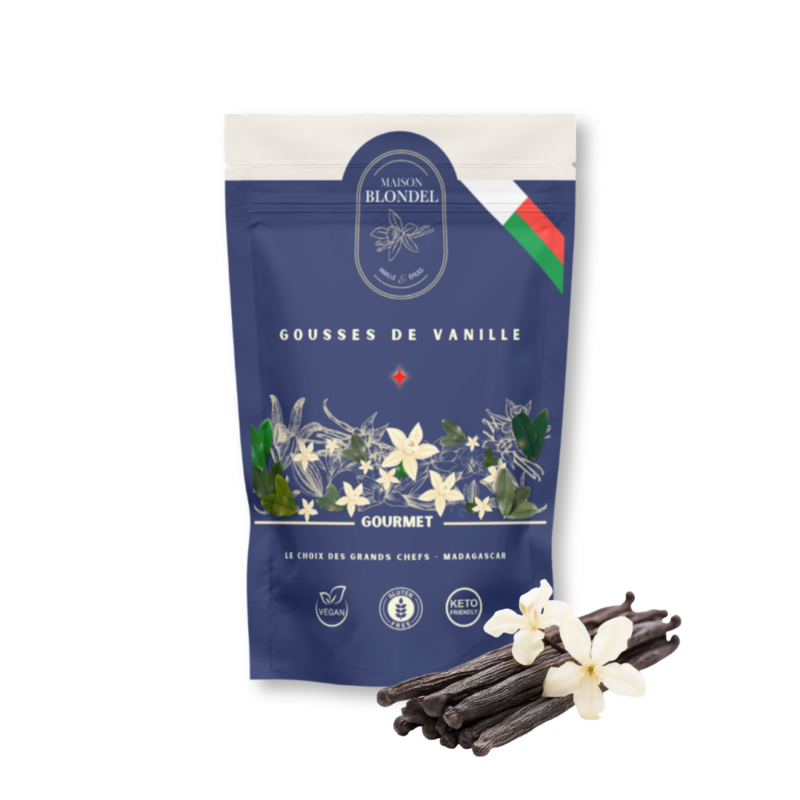 Nous proposons nos gousses en conditionnements adaptés aux professionnels : Lot de 25 gousses, lot de 100 gousses, 250 g, 500 g, 1 kg (sous vide). Tarifs dégressifs sur demande pour les grossistes, restaurateurs, pâtissiers et transformateurs.